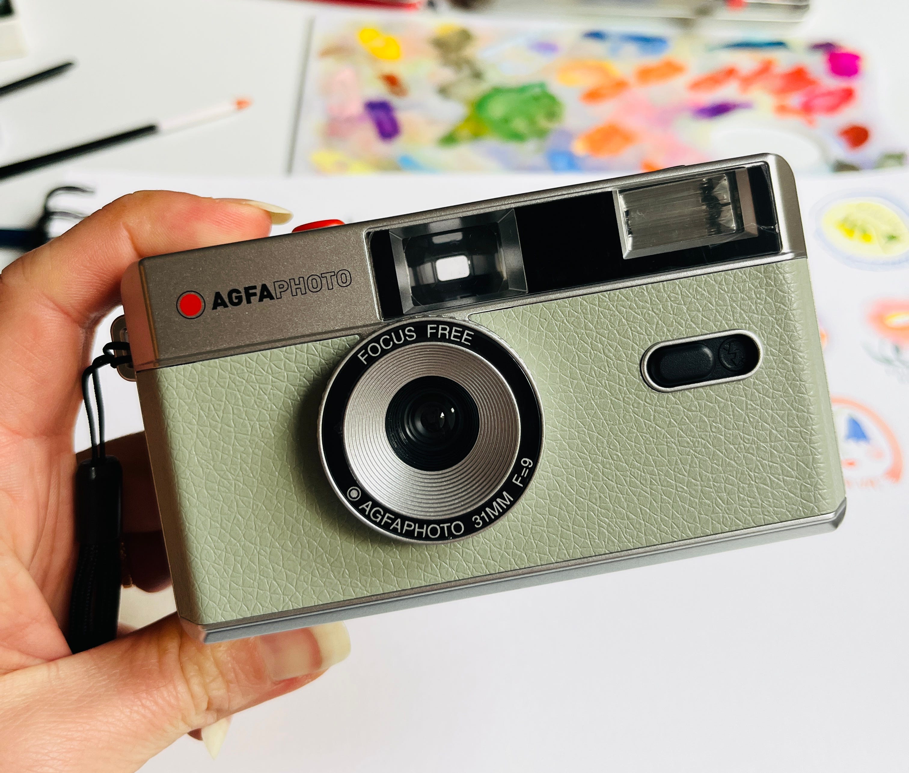 Il est tellement beau, cet appareil photo simple et léger ! Il marche avec une pile AAA, a un flash et compatible avec des pellicules couleur et noir /blanc 35 mm